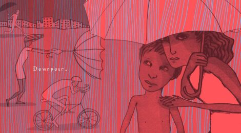A picture book from an award-winning artist that uses vibrant reds and blues to stunningly evoke the intensity of a heatwave and the refreshing relief that comes with an unexpected downpour of a cooling rain.