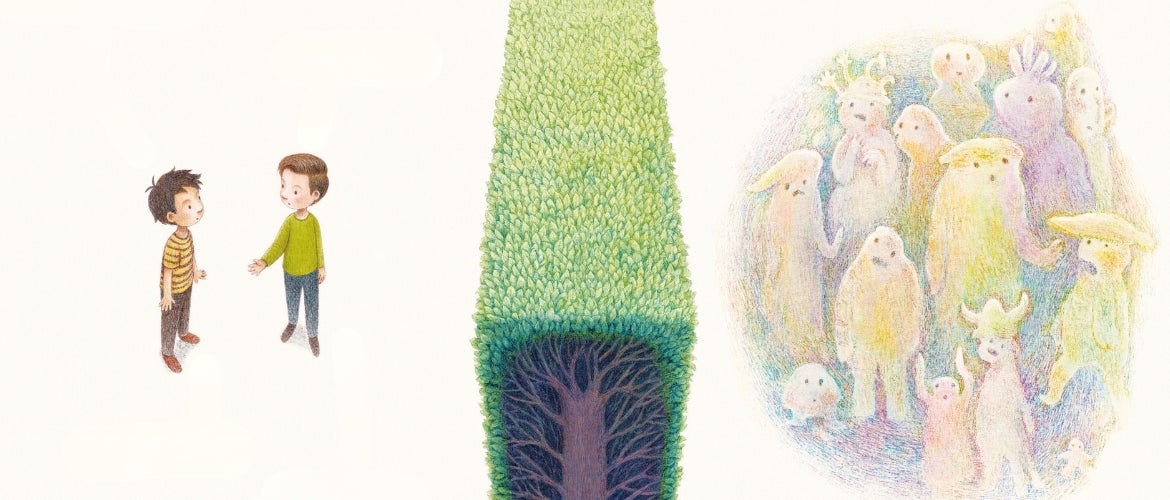 Standing by the hedge that divides them, two children wonder what the people on the opposite side are like. They’re not like us, one child insists. The other child wonders: How are they different? Can they fly? Do they have tentacles? Are they machines? Or are they human? And if they are, do they think and feel? Maybe, just maybe, the people here and the people there are not so different after all.