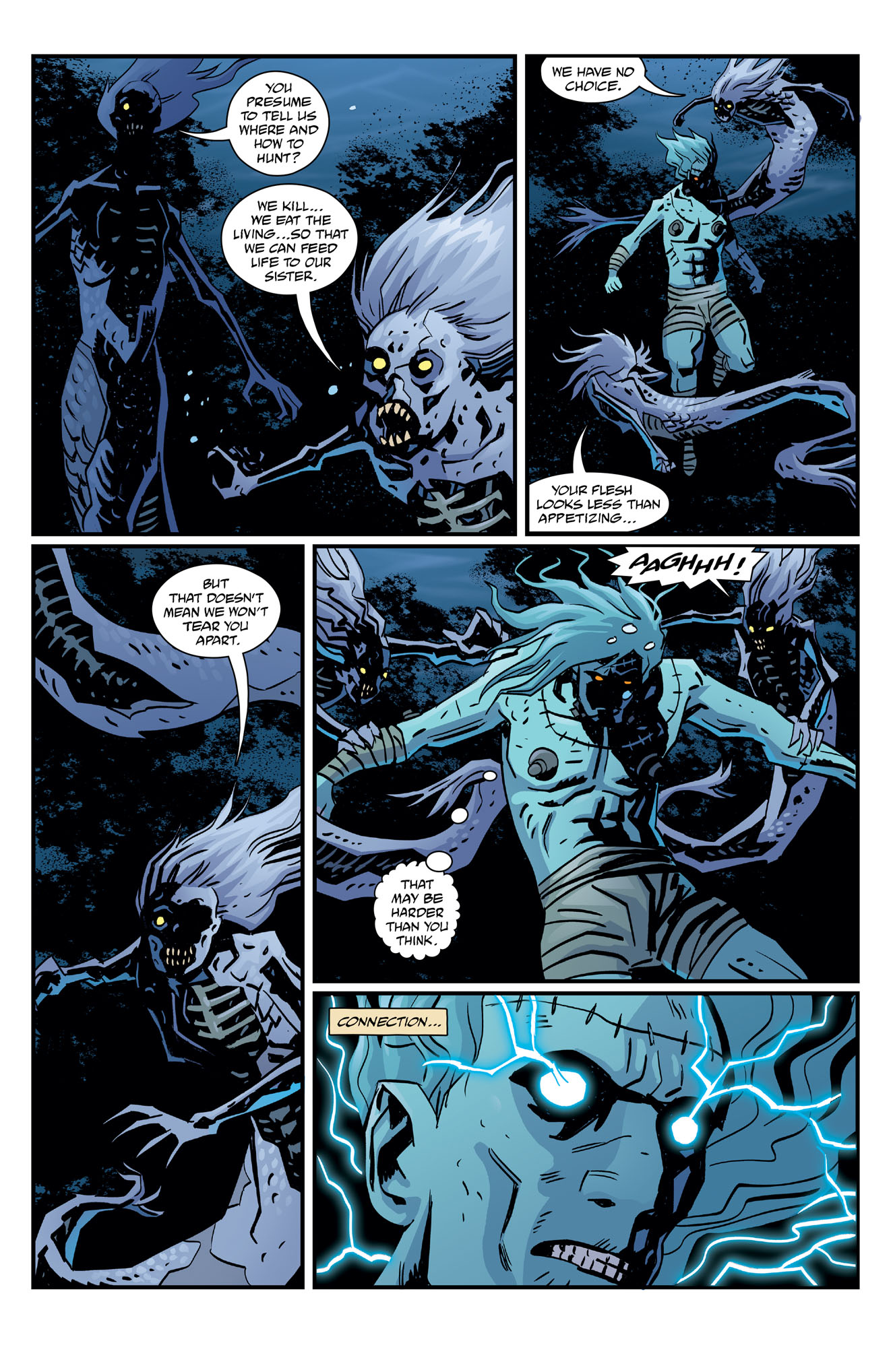 Collects Frankenstein: New World – The Sea of Forever #1–#4 with sketchbook material.