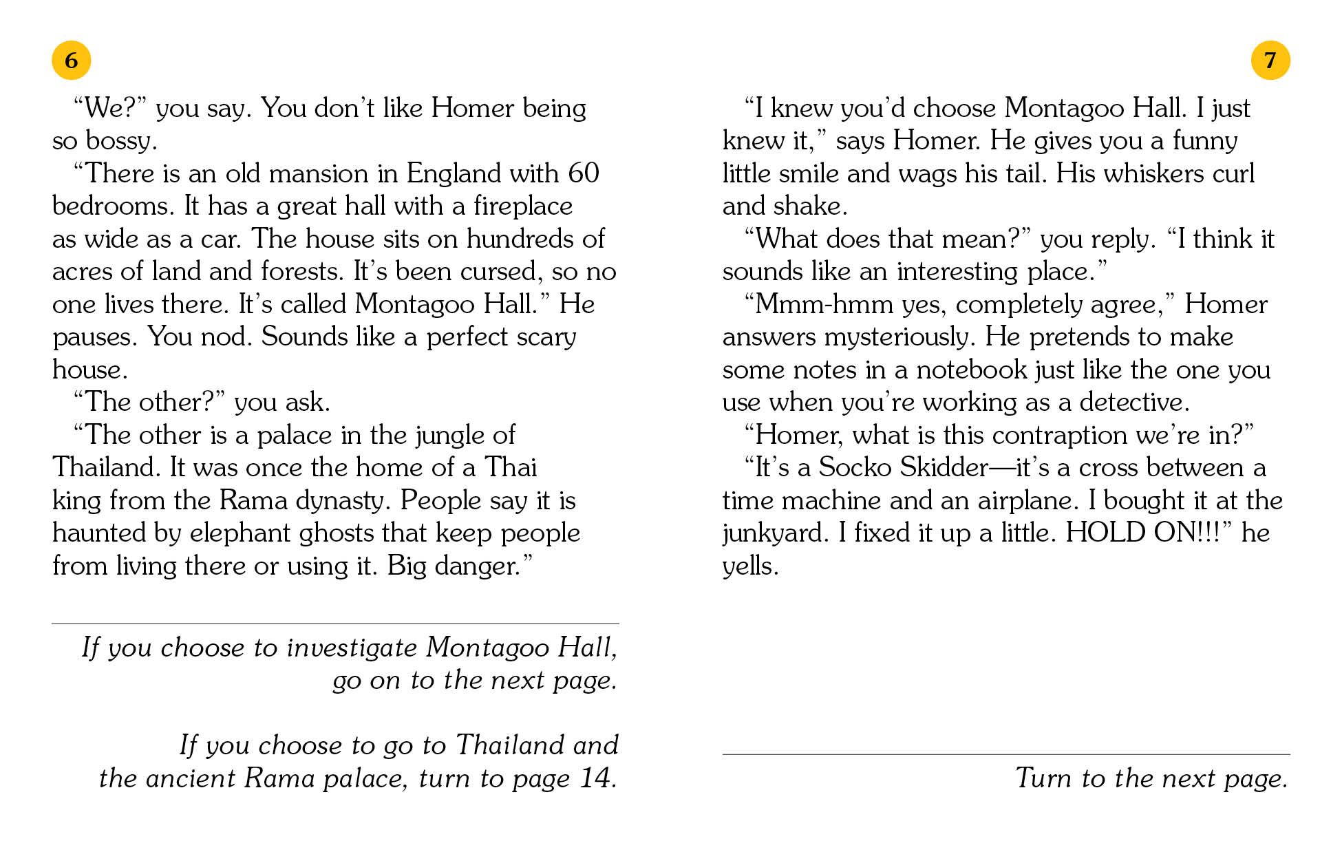 YOU embark on another time-traveling adventure around the world with your best friend, Homer the dog. If you jump into Homer's crazy contraption and visit the next haunted house, will you ever make it home? Will you learn to read Latin? You might visit a British manor with magic inside, then shoot off to Thailand and meet some majestic elephants.